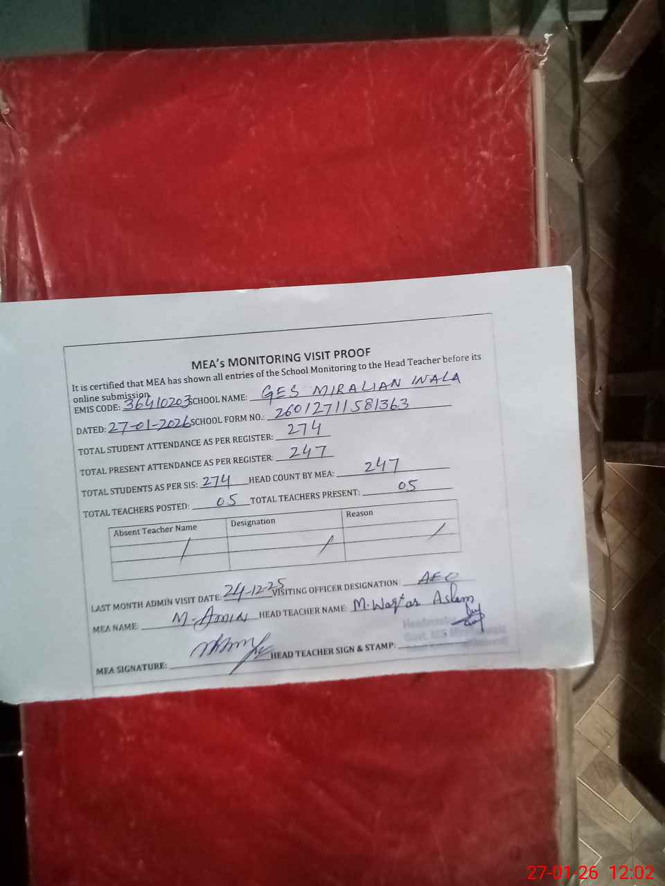 | EMIS Code: 36410203 | Name of School: GES MIRALIAN WALA, P/O MOUZA OKAAN WALA, KABIRWALA | |||