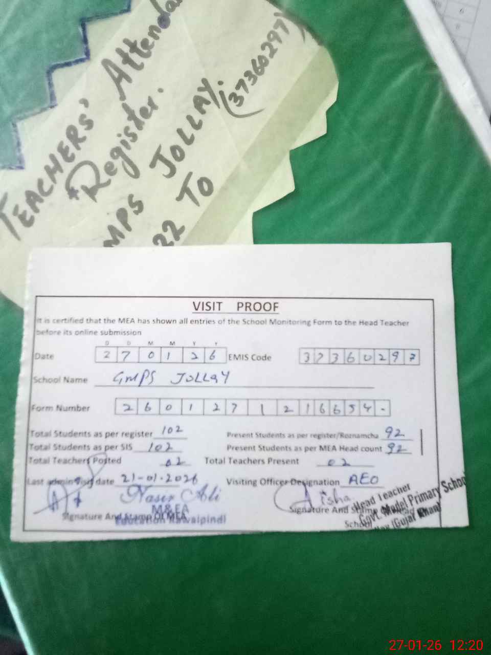 | EMIS Code: 37360297 | Name of School: GMPS JOLLEY P.O SUKHO | |||