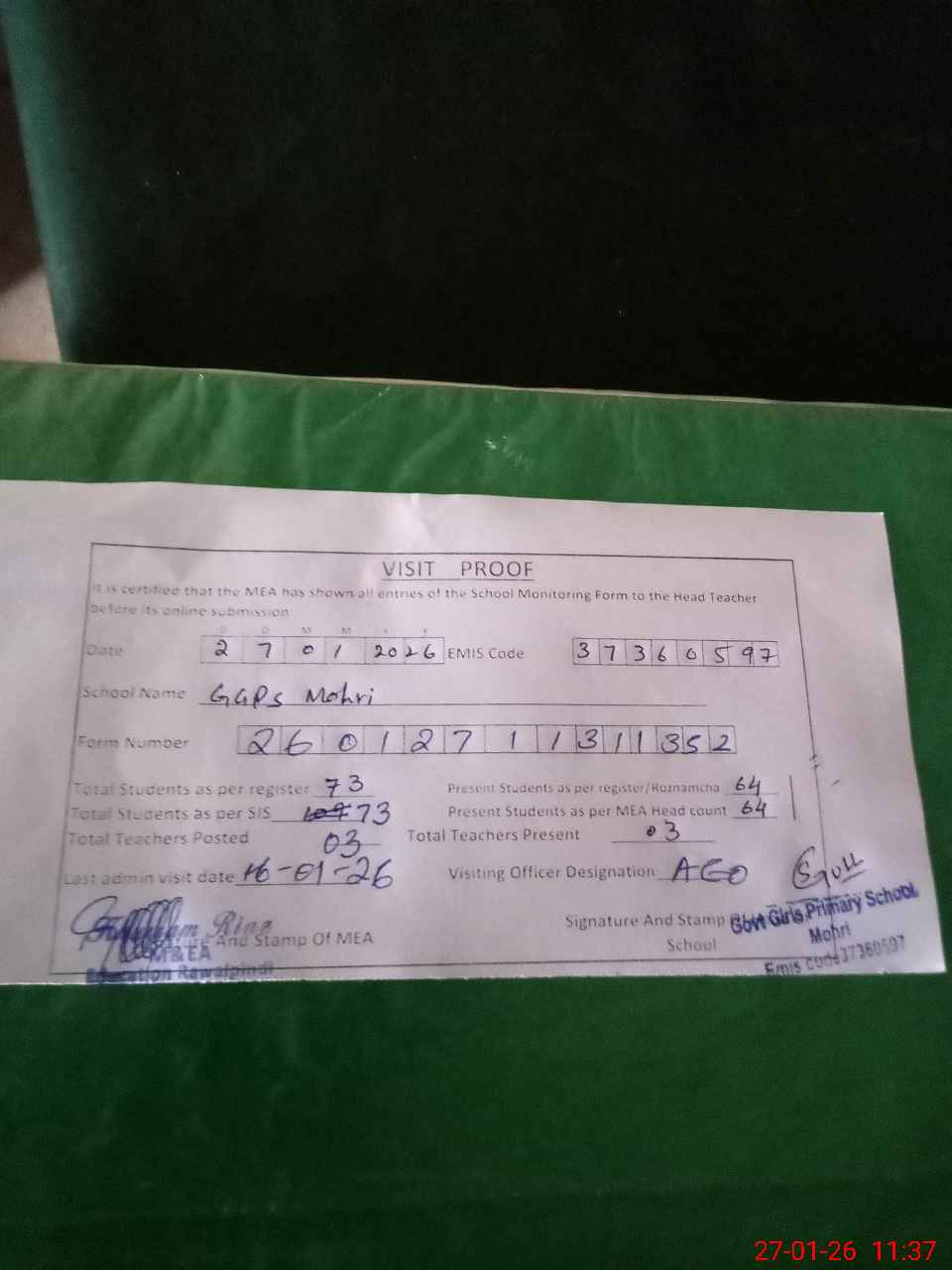 | EMIS Code: 37360597 | Name of School: GGPS MOHRI | |||