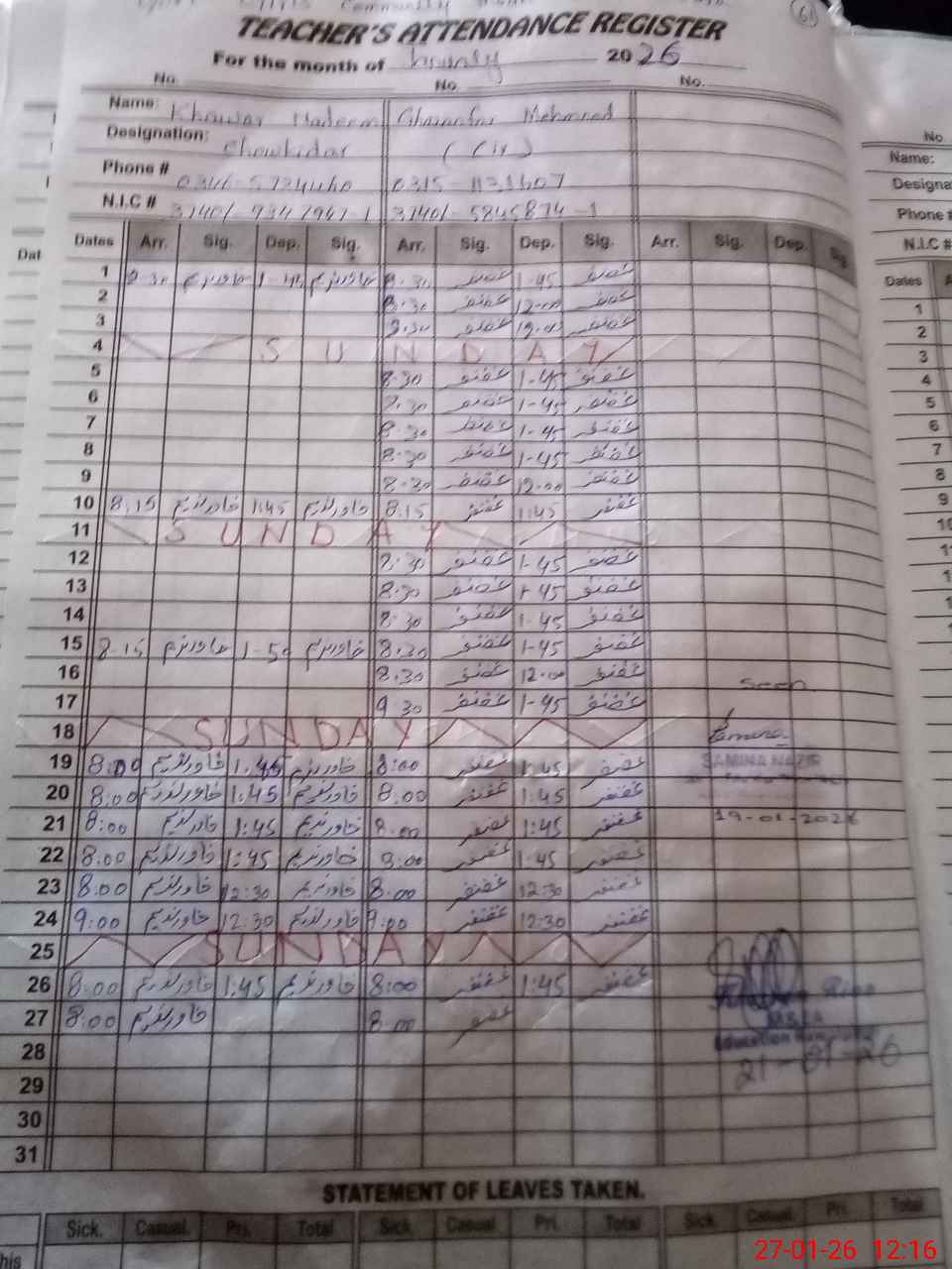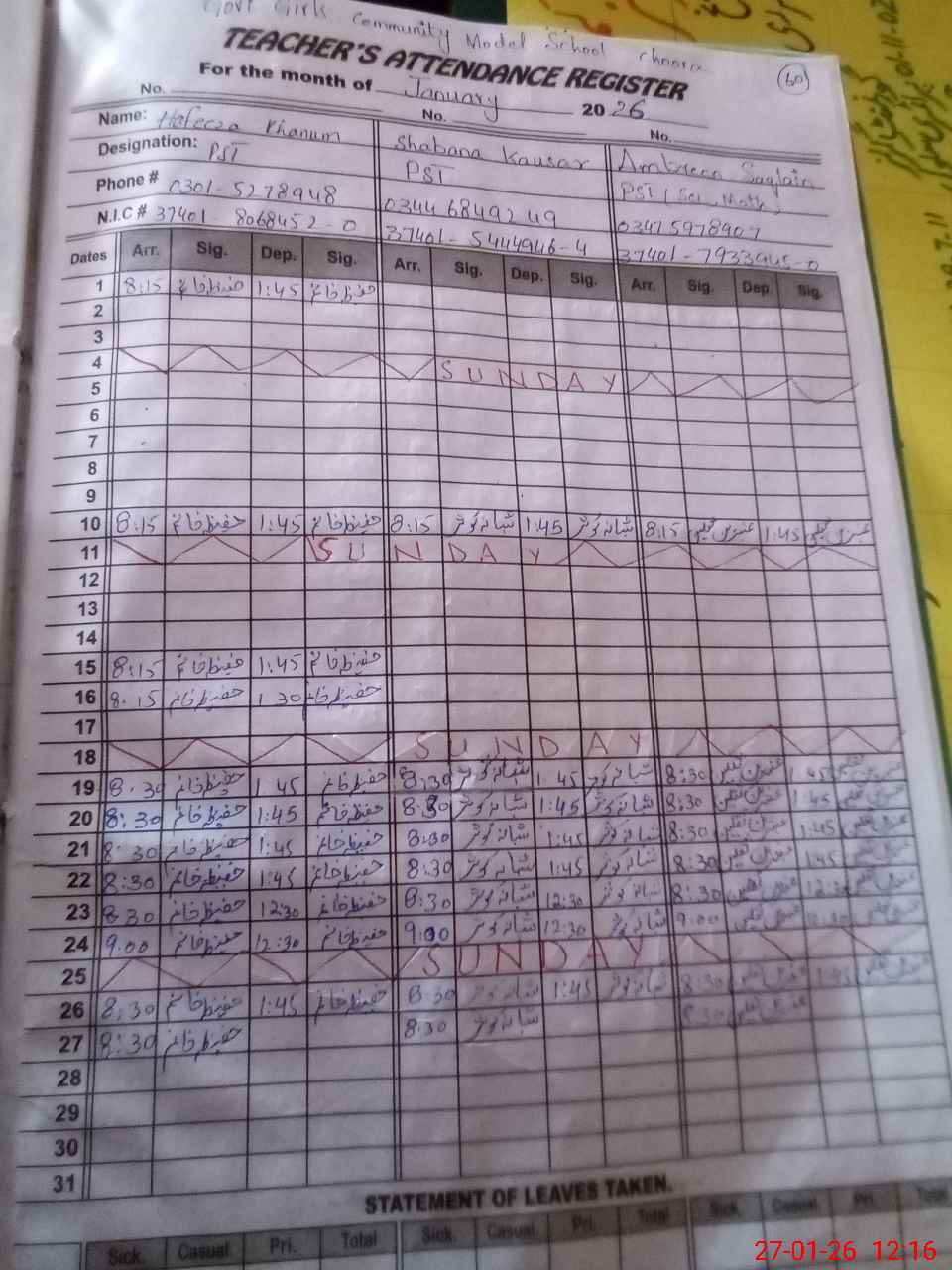 | Name: HA**** KH**** Designation: (School Headmaster's/Headmistress's) PST Phone/Cell Number: 03**** |