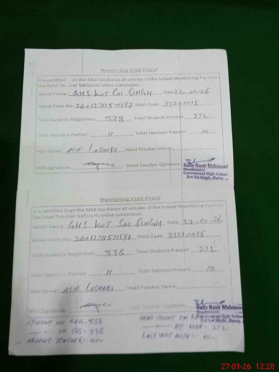 | EMIS Code: 33220015 | Name of School: GHS KOT SAI SINGH | |||