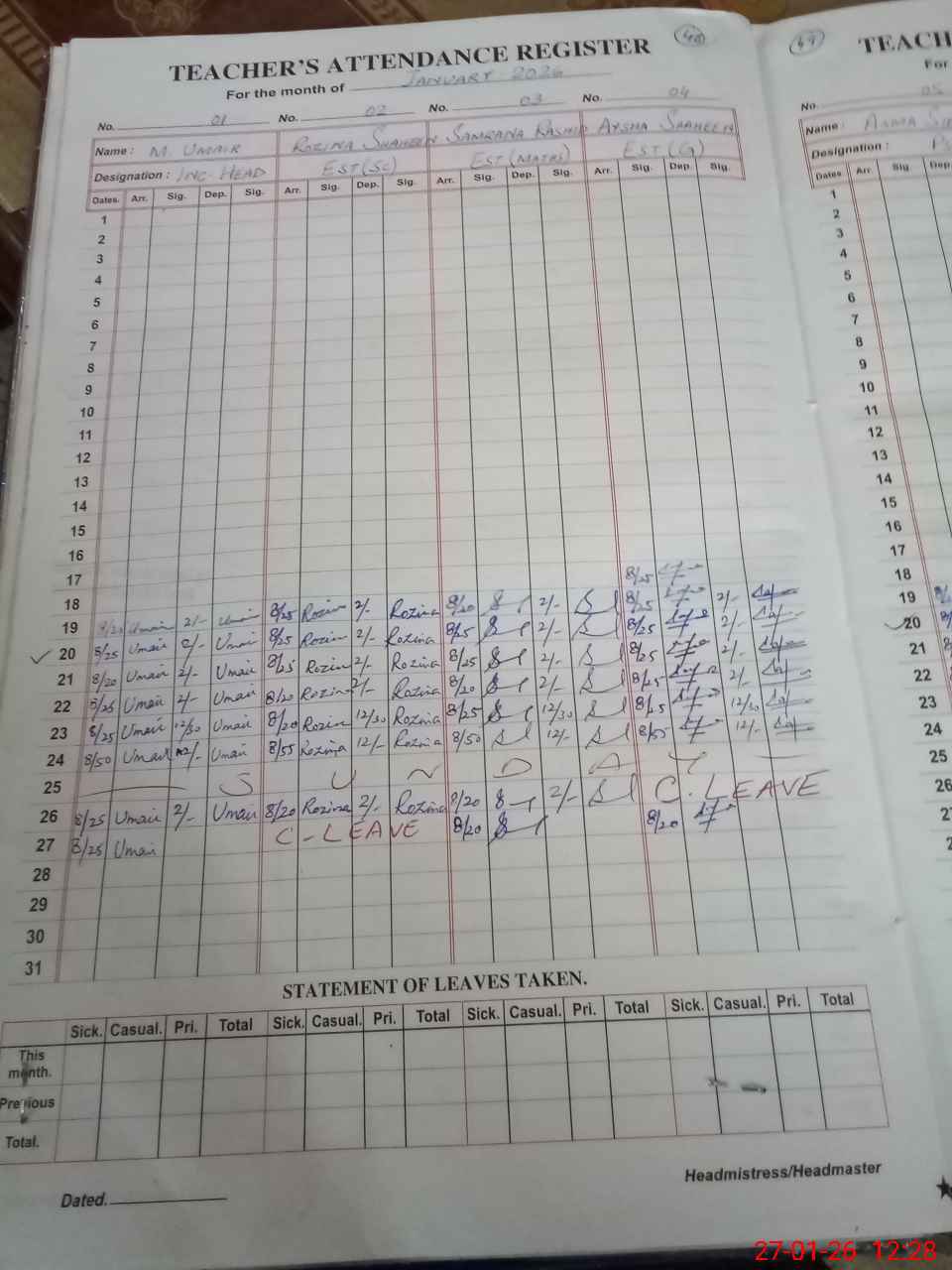 | 38**** | Ro**** Sh**** | EST Science | Regular | 2 | 0 | 0 | 0 | 0 | 0 | 0 | 0 | 2 | Casual |