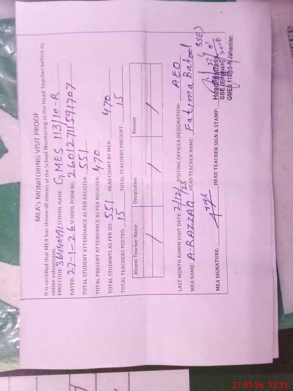 | EMIS Code: 36440491 | Name of School: GMES 113/10-R, JAHANIAN | |||