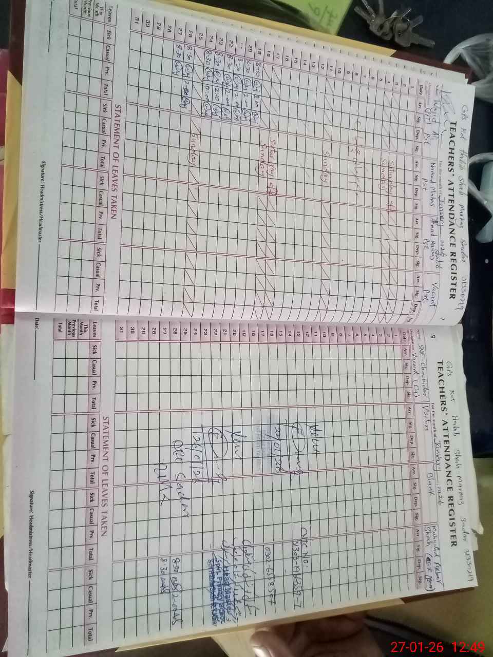 | Name: Wa**** Al**** Designation: (School Headmaster's/Headmistress's) P S T Phone/Cell Number: 03**** |