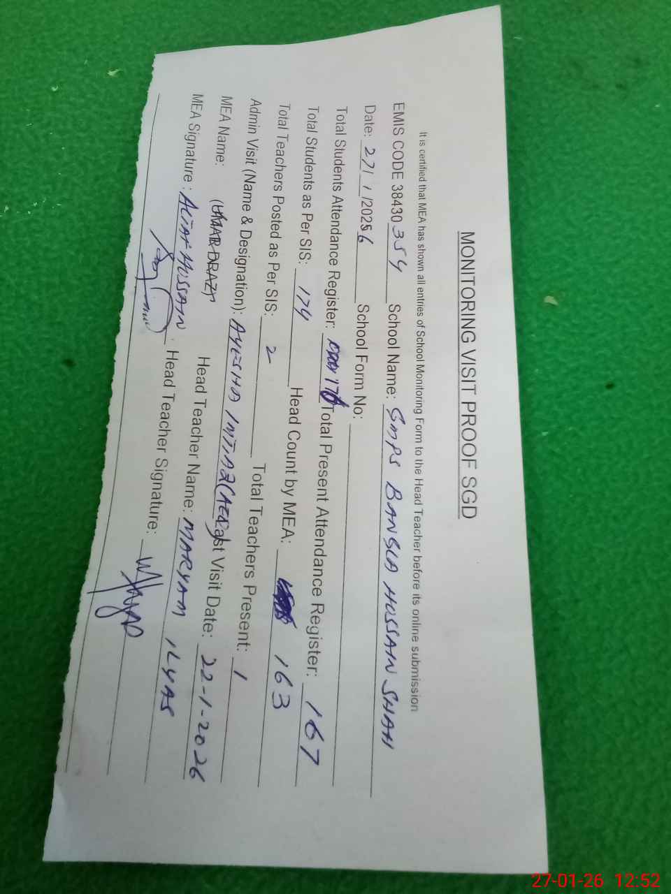 | EMIS Code: 38430354 | Name of School: GPmS BANGLA HUSSAIN SHAH | |||