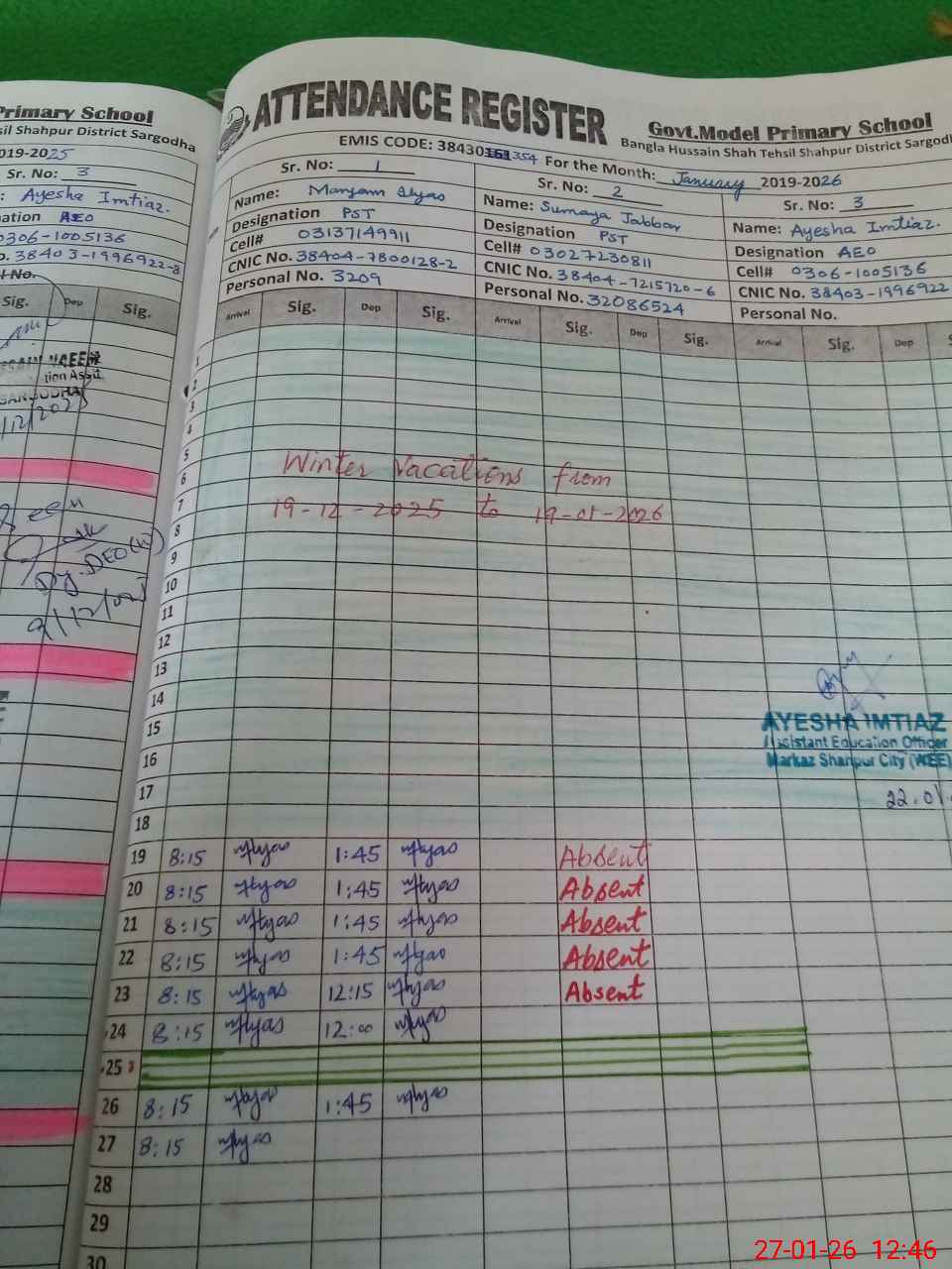 | 38**** | Su**** Ja**** | PST Science/Maths | Regular | 0 | 0 | 31 | 0 | 0 | 0 | 0 | 0 | 0 | Absent (Un-Authorized) |