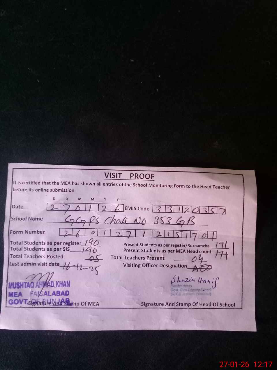 | EMIS Code: 33120357 | Name of School: GGPS CHAK 353 GB JARANWALA | |||