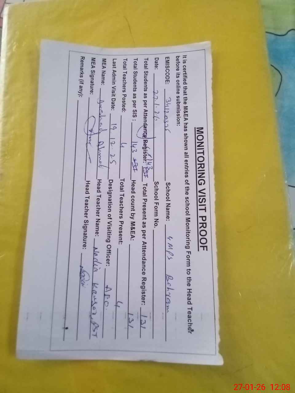 | EMIS Code: 34120335 | Name of School: GMPS BEHRAM | |||