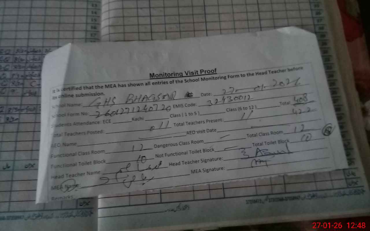 | EMIS Code: 32430012 | Name of School: GHS BHAGSAR | |||