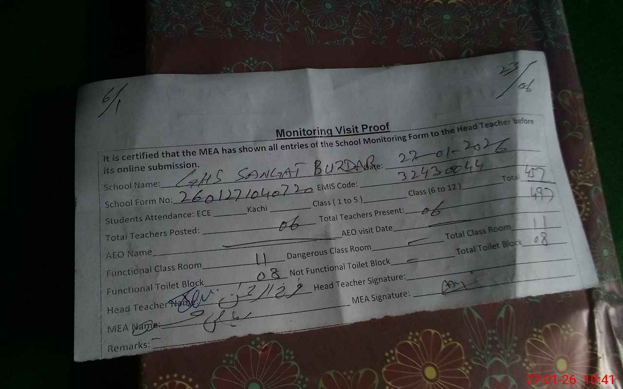 | EMIS Code: 32430044 | Name of School: GHS SANGAT BUZDAR | |||
