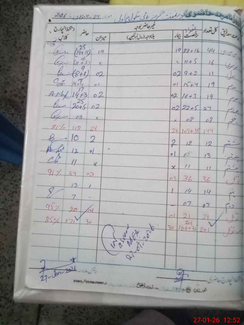 | Total Students Present | 0 | 25 | 9 | 18 | 17 | 25 | 8 | 10 | 12 | 11 | 13 | 7 | 171 | |||