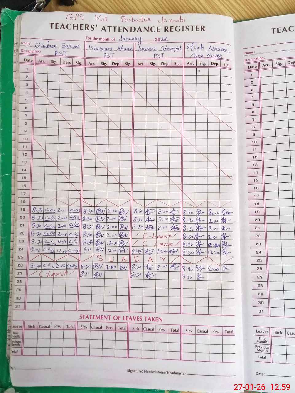| 33**** | Gh**** Sa**** | PST Arts | Regular | 1 | 0 | 0 | 0 | 0 | 0 | 0 | 0 | 1 | Casual |
