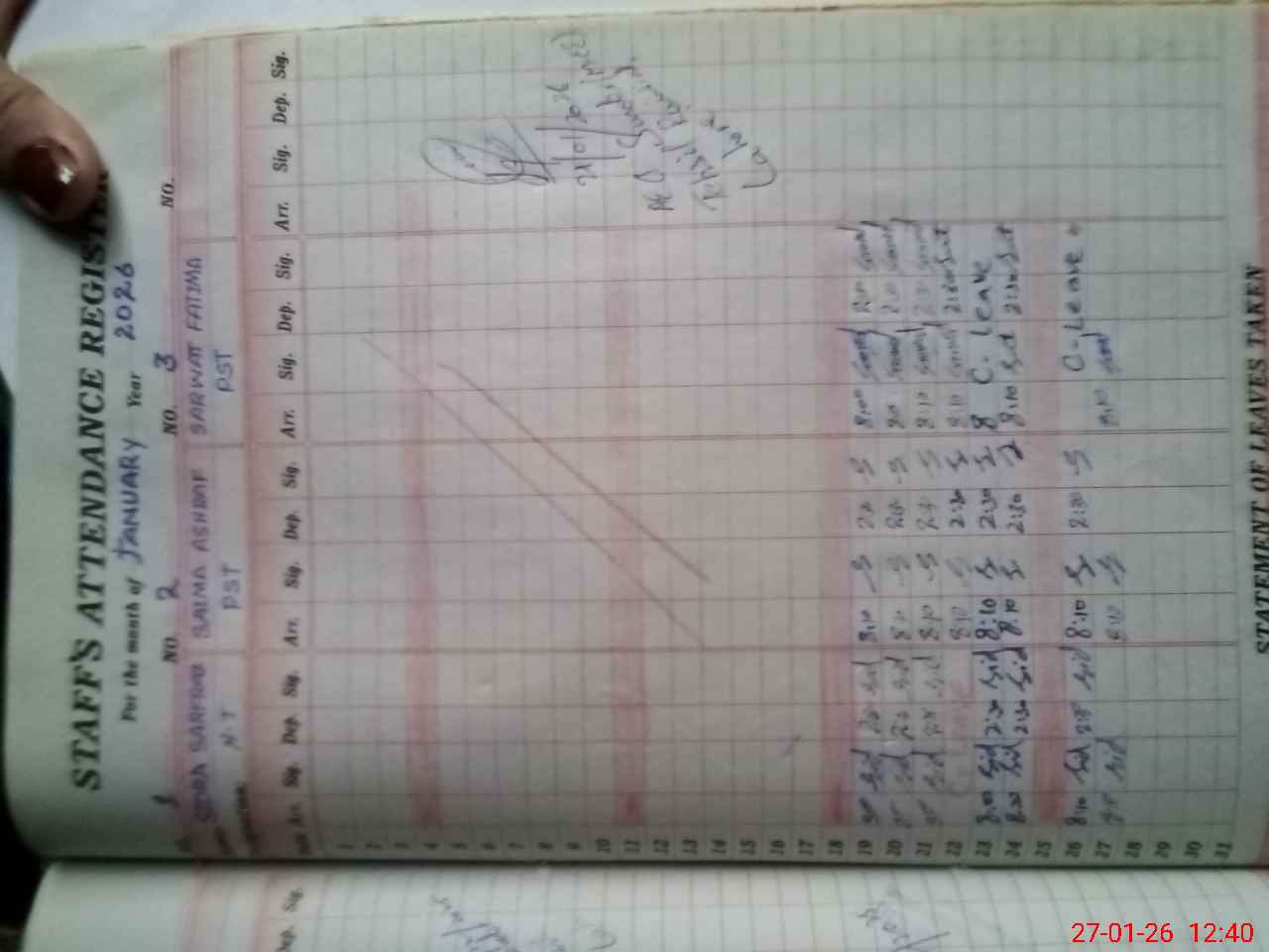 | CNIC | Full Name | Designation | R/C | Absence During Last Calender Month |