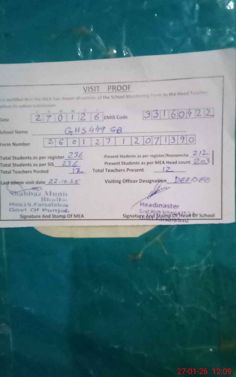| EMIS Code: 33160422 | Name of School: GHS CHAK 449 GB TANDLIANWALA FSD | |||