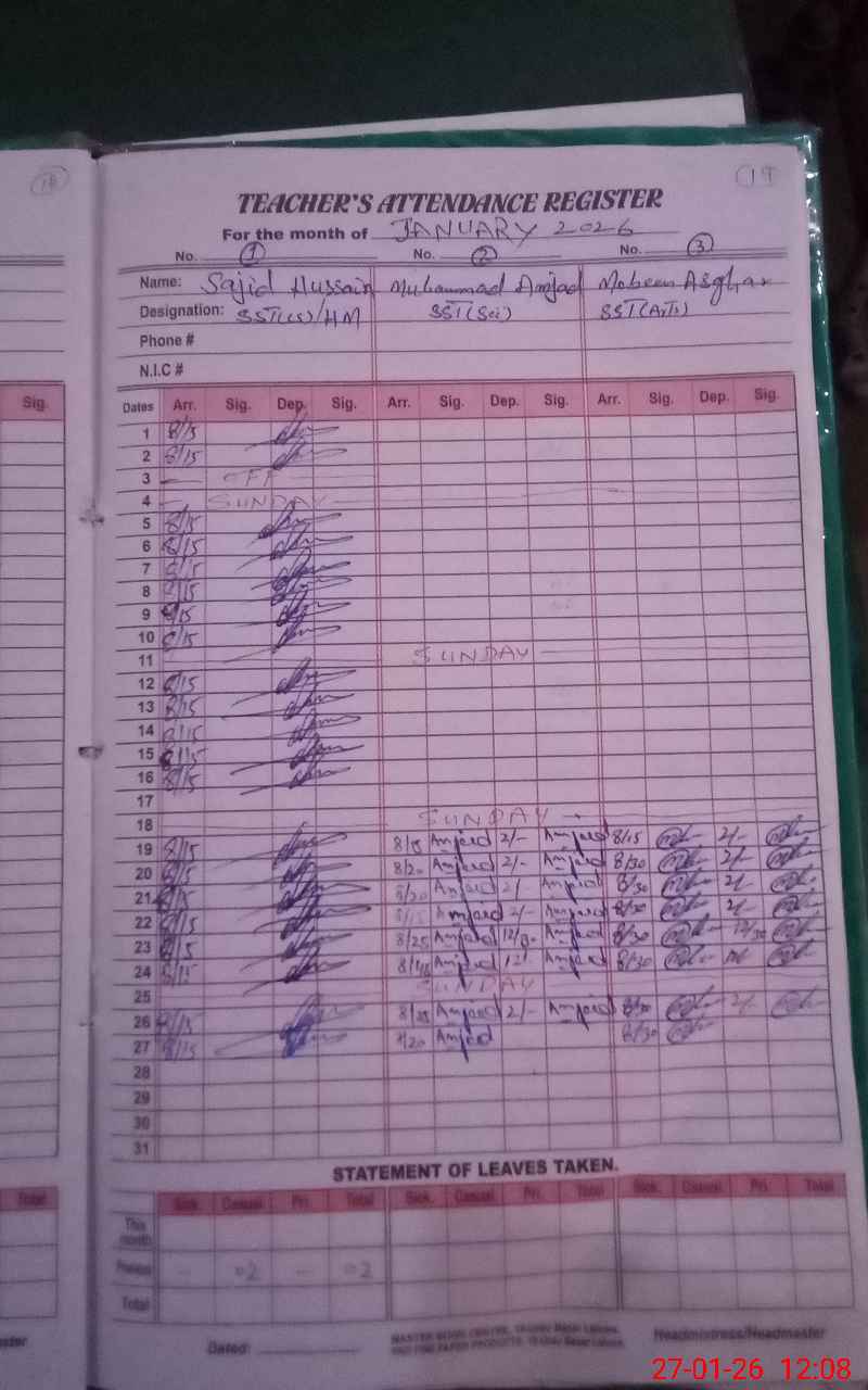 | Attendance Register | Head Teacher | MEA with School | Visit Proof |