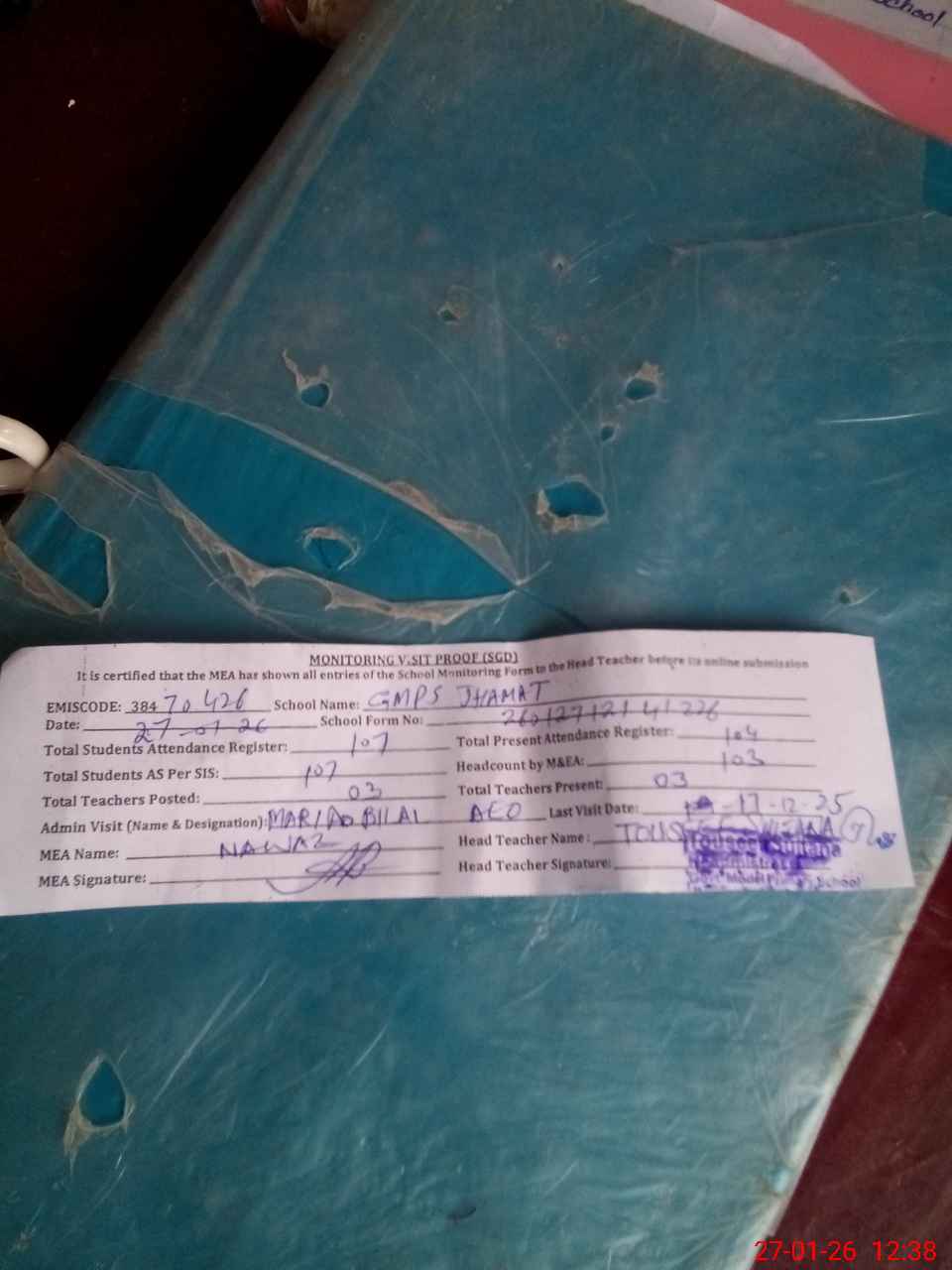 | EMIS Code: 38470426 | Name of School: GMPS JHAMAT | |||