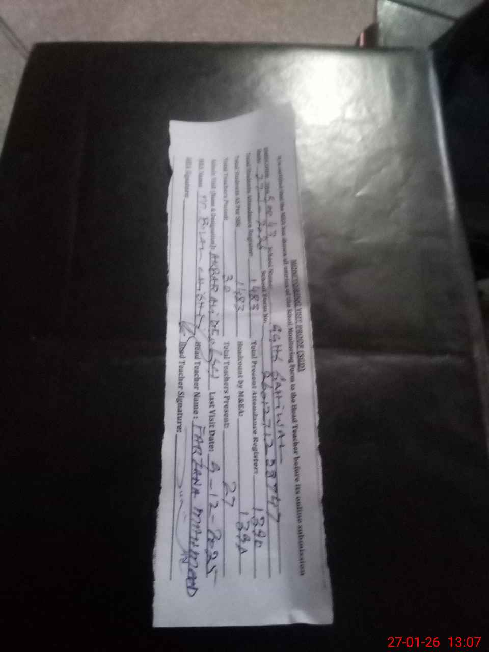 | Attendance Register | Head Teacher | MEA with School | Visit Proof |