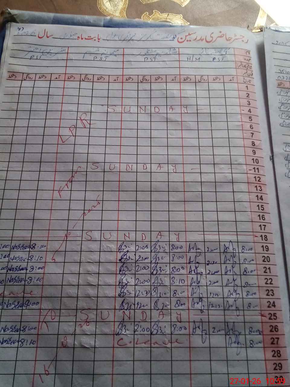 | Name: As**** Na**** Designation: (School Headmaster's/Headmistress's) PST Phone/Cell Number: 03**** |