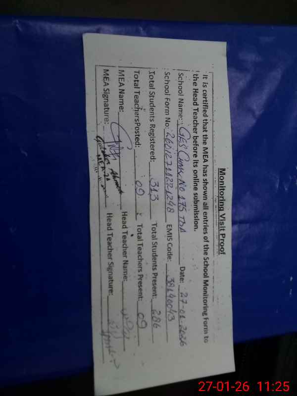 | EMIS Code: 38140043 | Name of School: GES CHAK NO.175 TDA | |||
