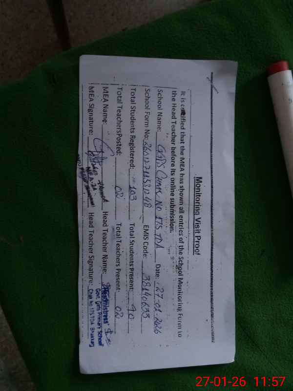 | Attendance Register | Head Teacher | MEA with School | Visit Proof |