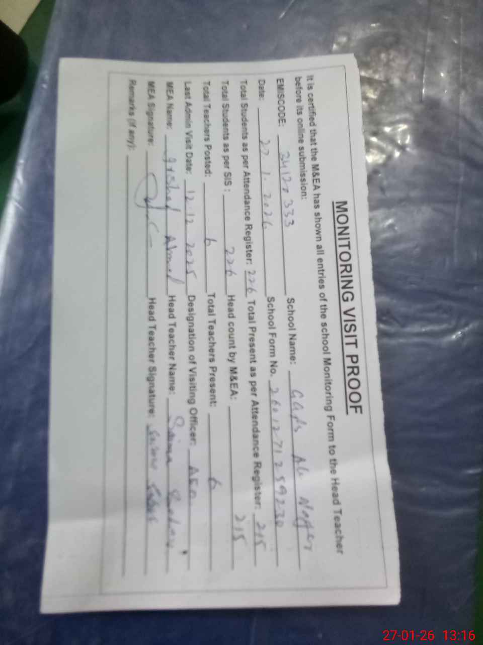 | EMIS Code: 34120333 | Name of School: GGPS ALI NAGAR | |||