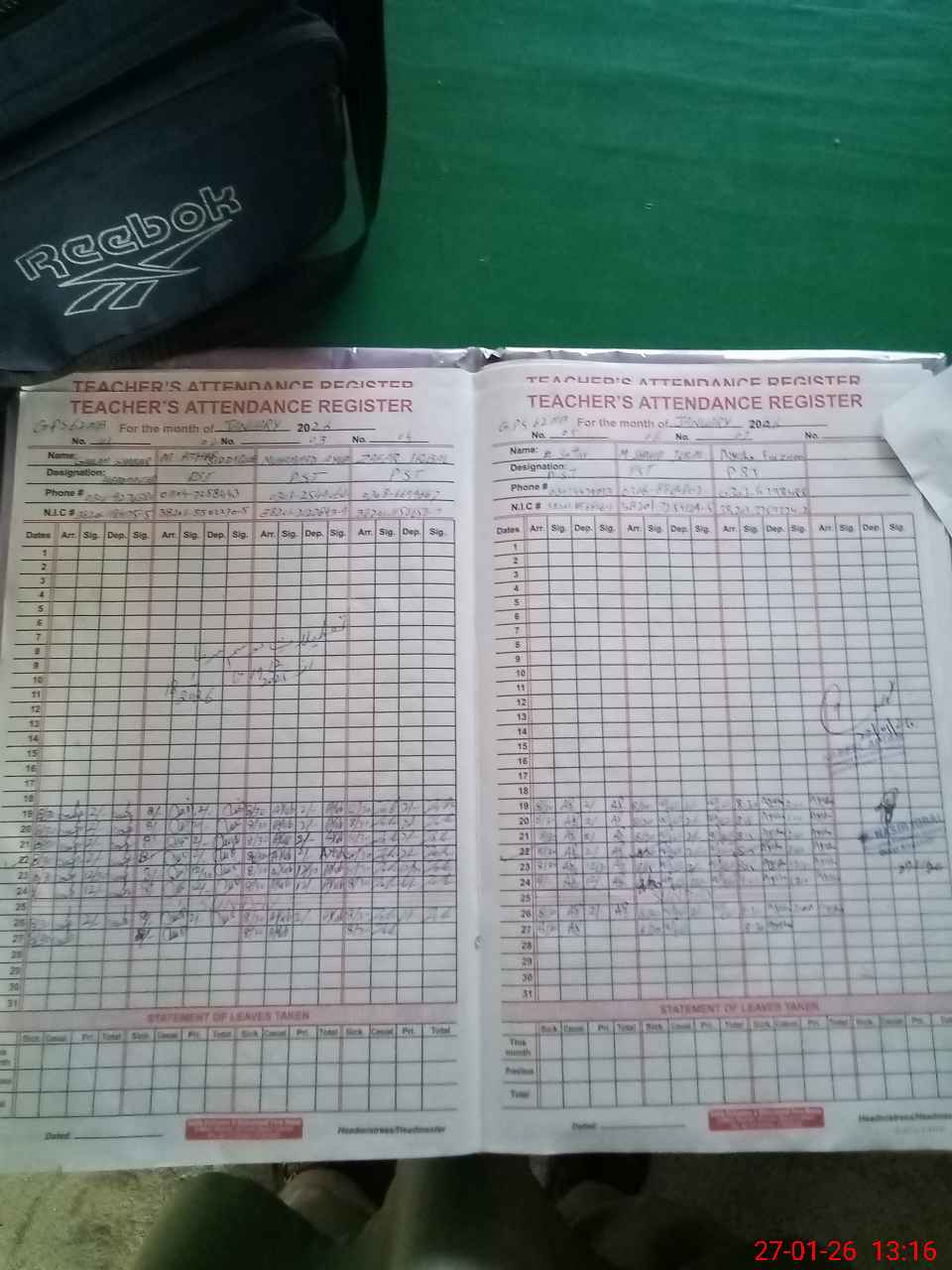| Name: GH**** SH**** Designation: (School Headmaster's/Headmistress's) PST Phone/Cell Number: 03**** |