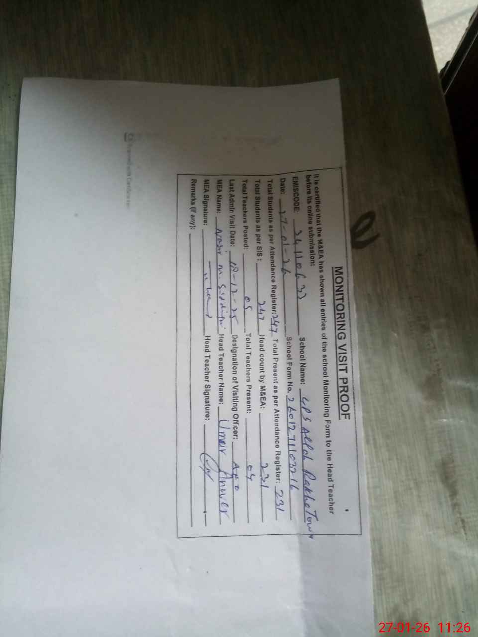 | EMIS Code: 34110633 | Name of School: GPS ALLAH RAKHA TOWN | |||