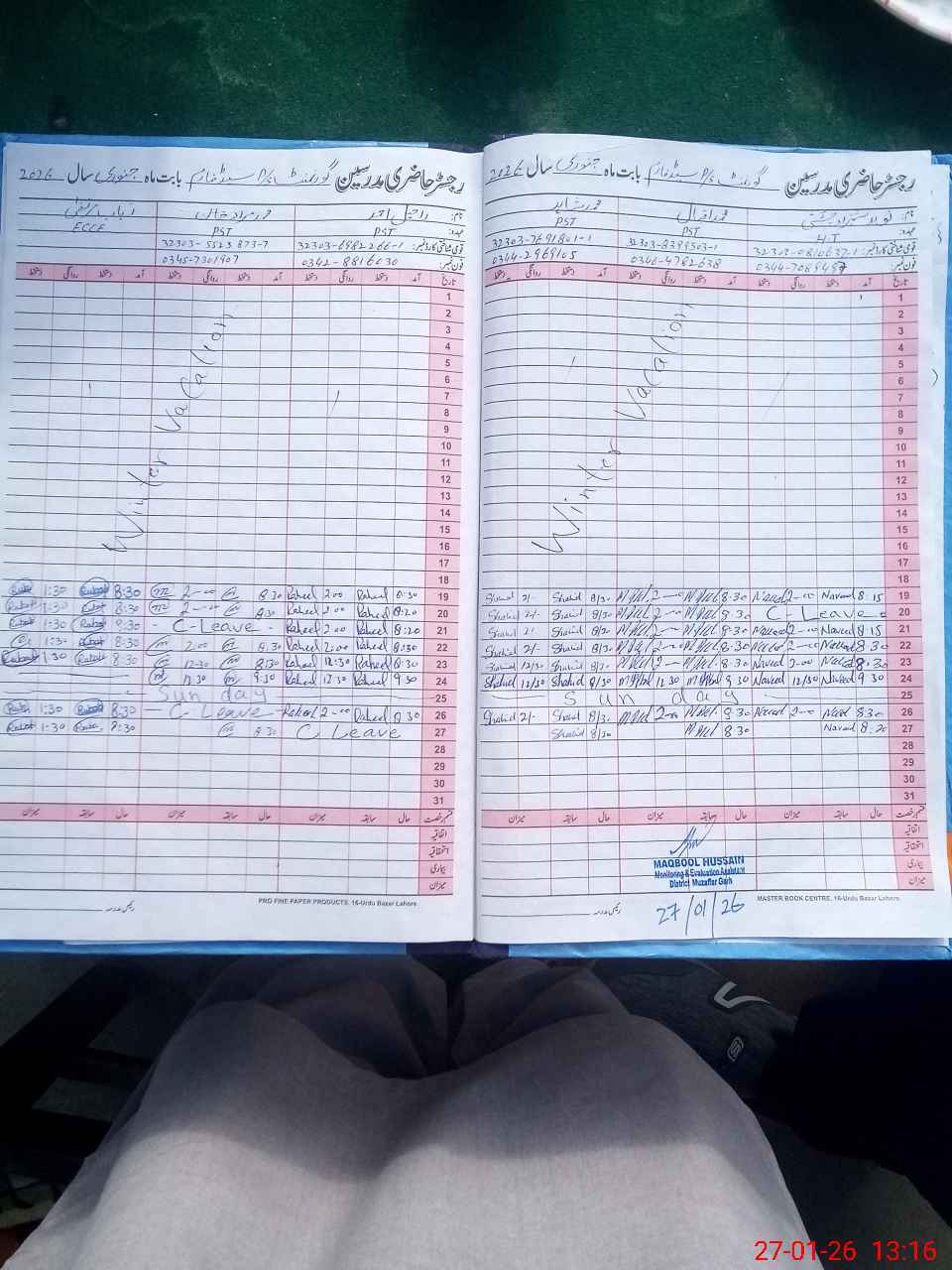| CNIC | Full Name | Designation | R/C | Absence During Last Calender Month |