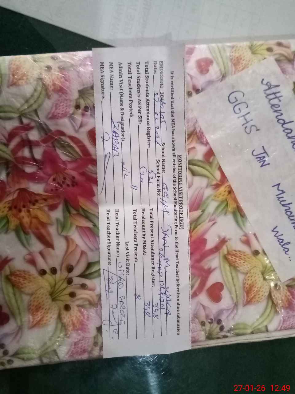 | Attendance Register | Head Teacher | MEA with School | Visit Proof |