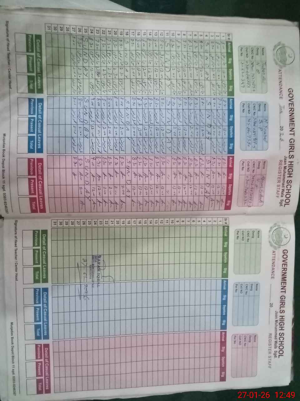 | Name: UF**** FE**** Designation: (School Headmaster's/Headmistress's) HEADMISTRESS Phone/Cell Number: 03**** |