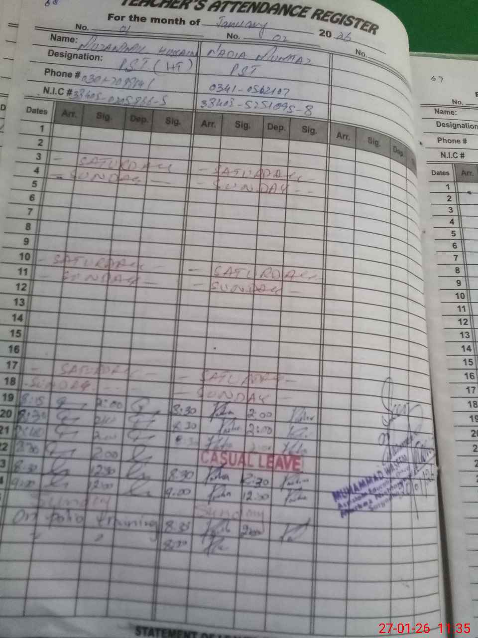 | Name: Mu**** Hu**** Designation: (School Headmaster's/Headmistress's) PST Phone/Cell Number: 03**** |