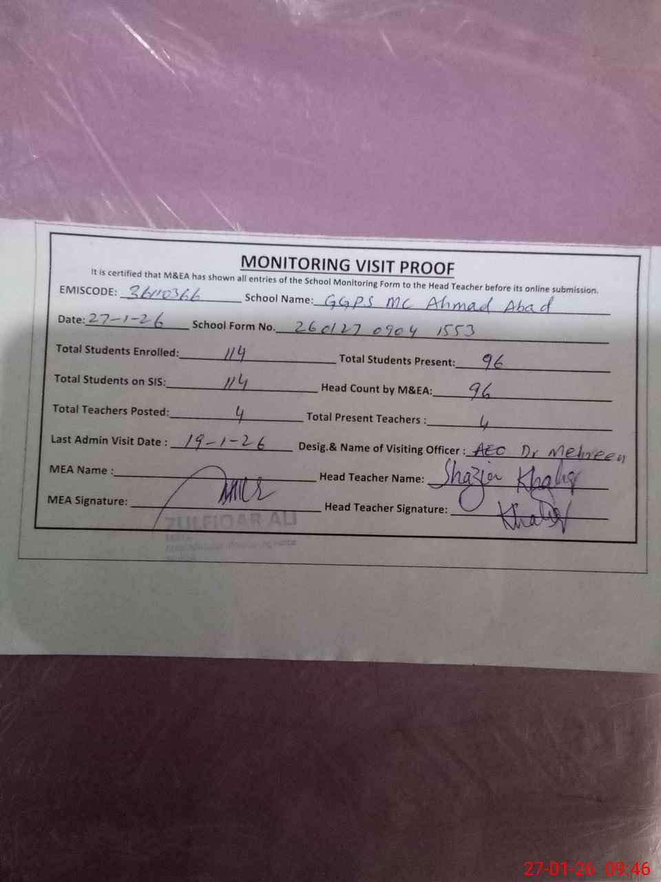 | EMIS Code: 36110366 | Name of School: GGPS MC AHMED ABAD | |||