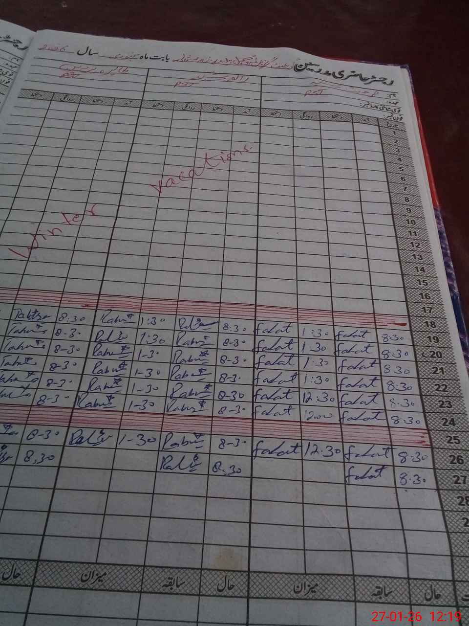 | CNIC | Full Name | Designation | R/C | Absence During Last Calender Month |