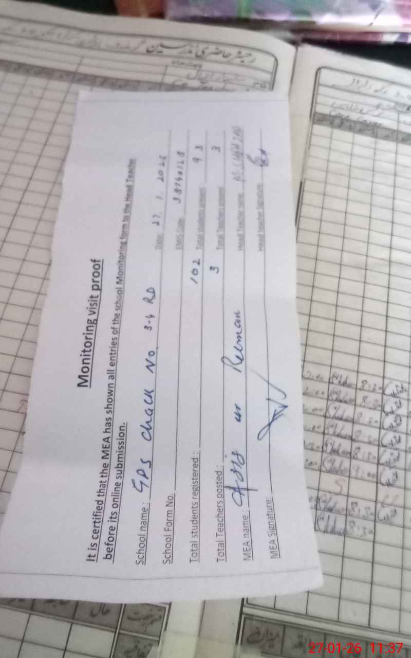 | EMIS Code: 38140128 | Name of School: GPS CHAK NO. 3-4 RAKH DULLE WALA | |||