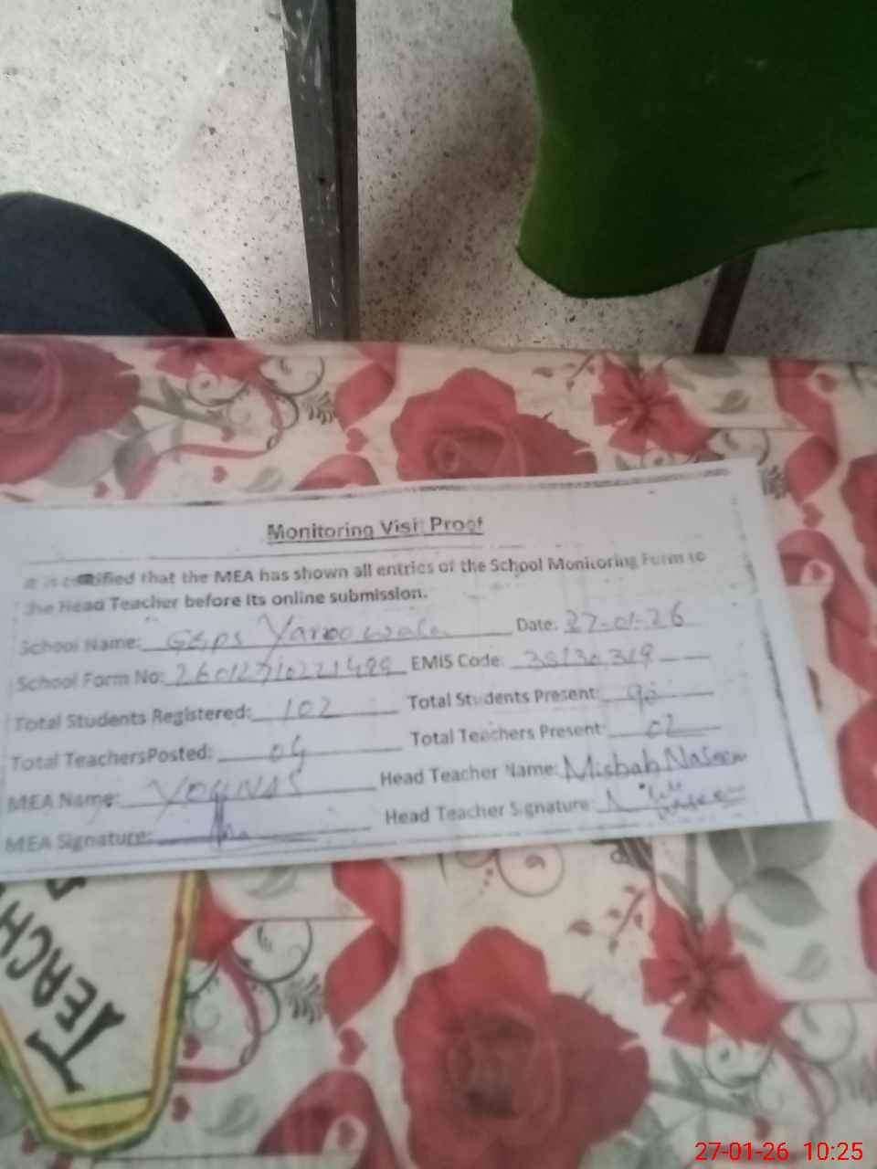 | EMIS Code: 38130319 | Name of School: GGPS YAROO WALA | |||