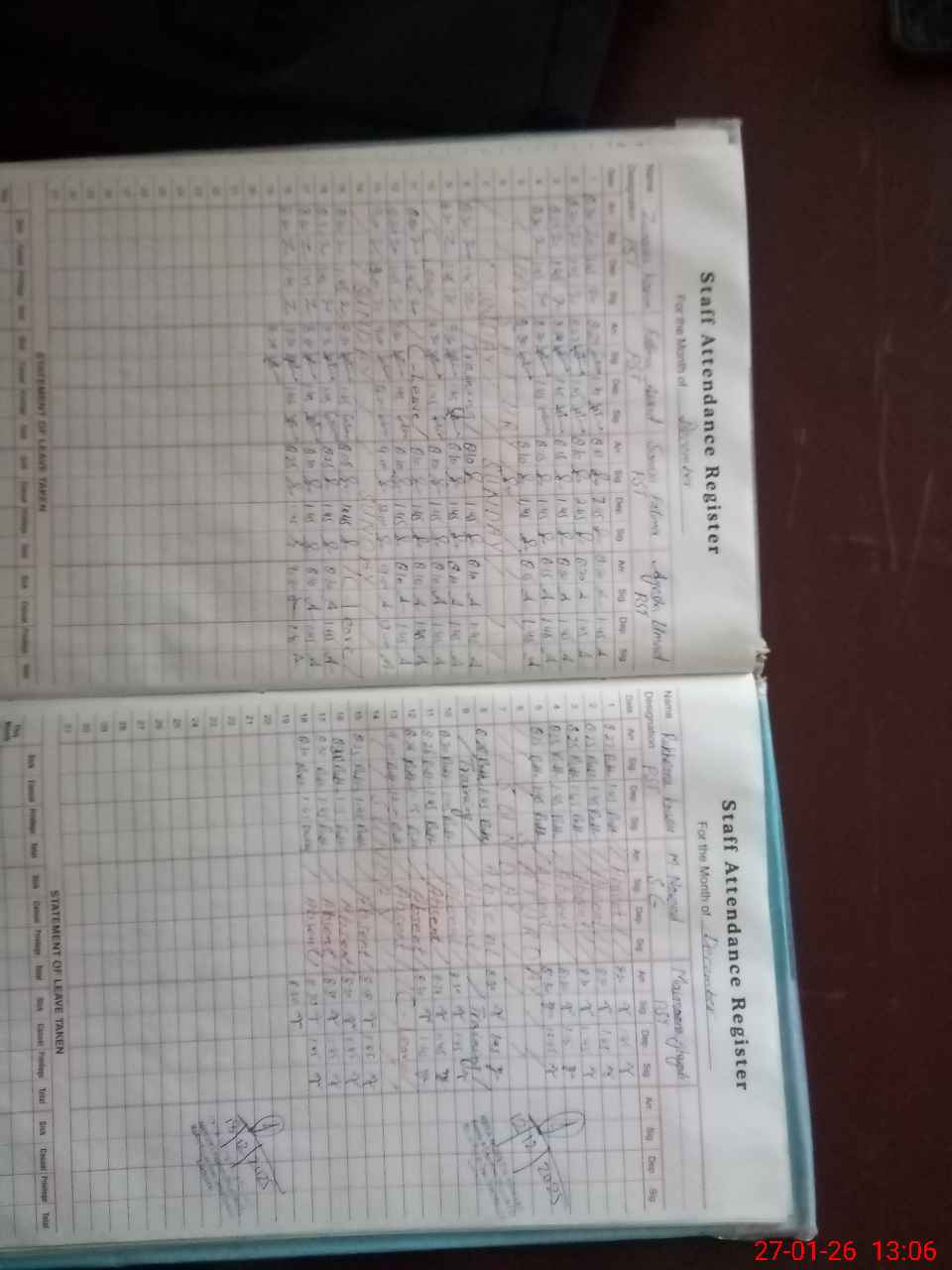 | 35**** | Mu**** Na**** | SG | 0 | 0 | 31 | 0 | 0 | 0 | 0 | 0 | 0 | Absent (Un-Authorized) | |
