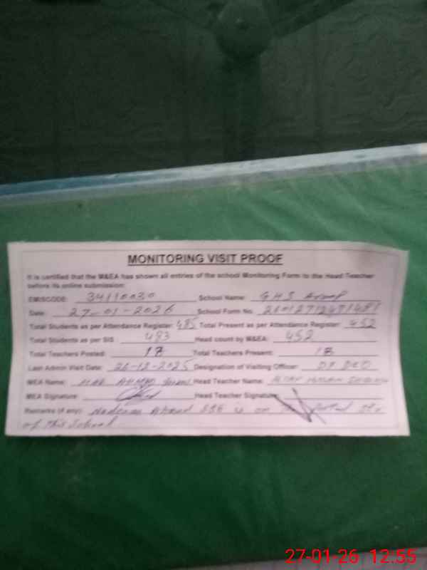 | EMIS Code: 34110030 | Name of School: GHS AROOP | |||