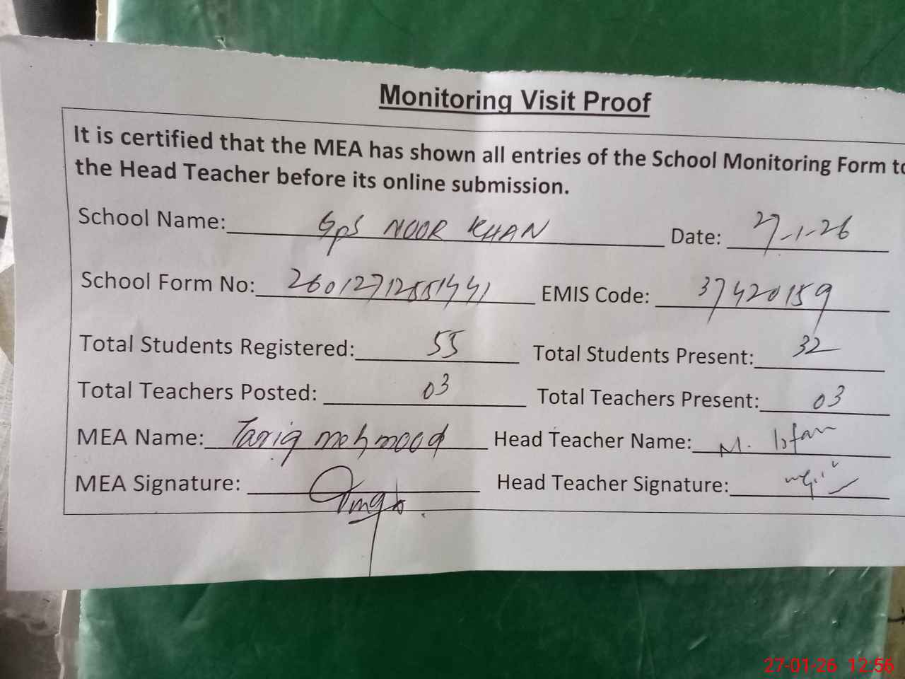 | EMIS Code: 37420159 | Name of School: GPS NOOR KHAN | |||