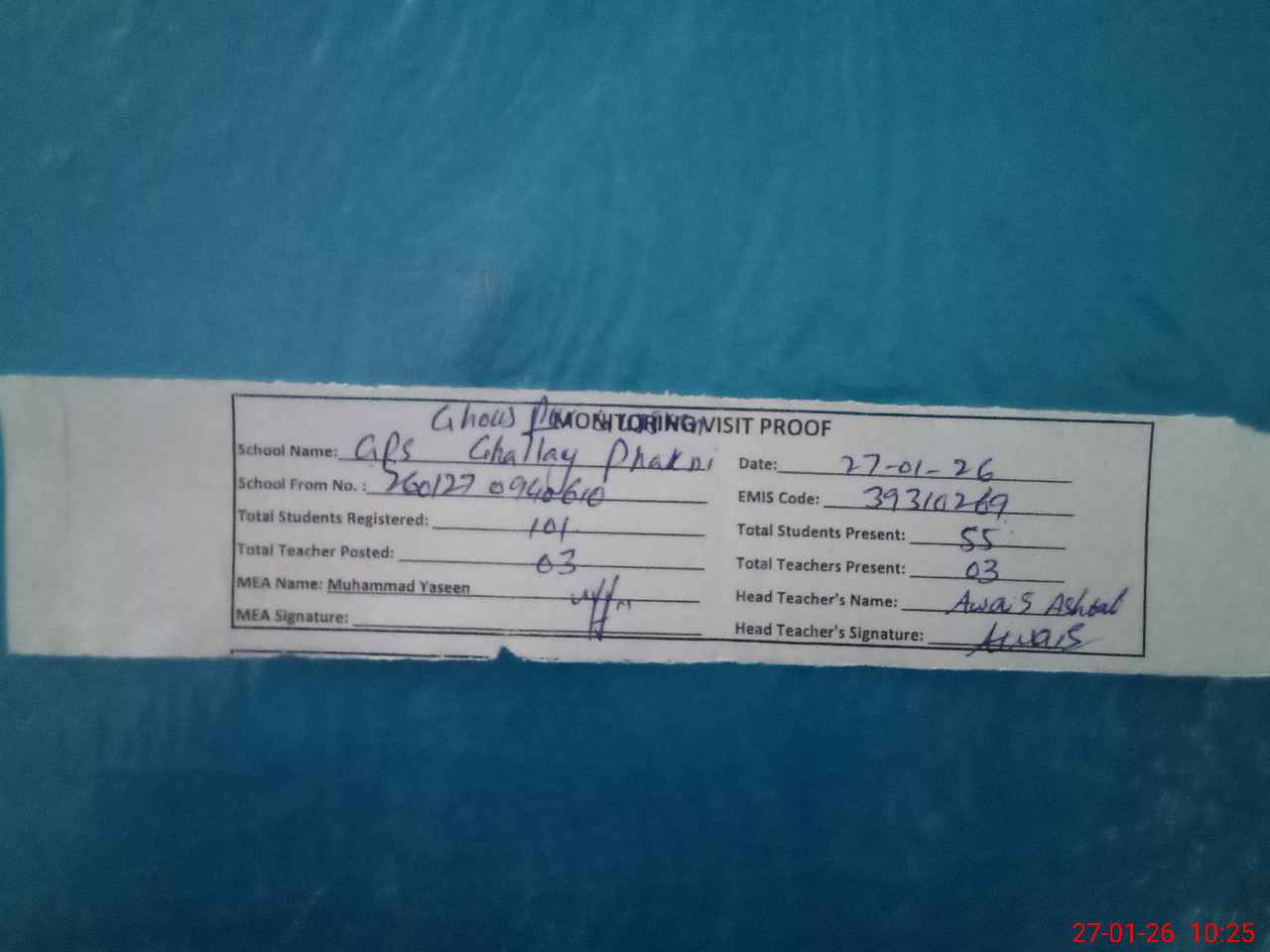 | EMIS Code: 39310269 | Name of School: GPS GHOUS PUR GUJJRAN (GHATTAY PHAKNI) | |||