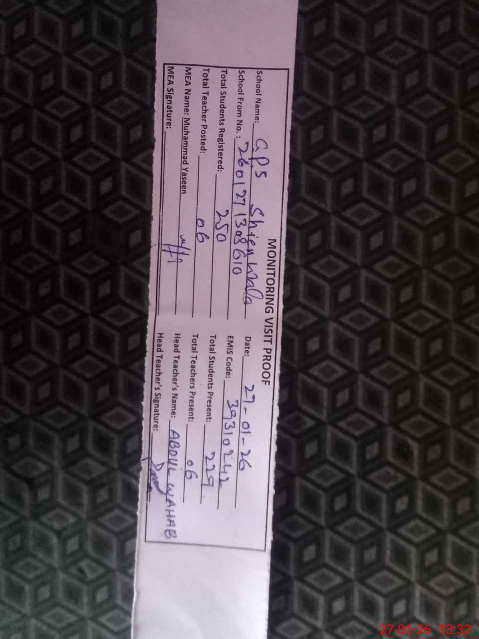 | EMIS Code: 39310242 | Name of School: GPS SHEIN WALA | |||
