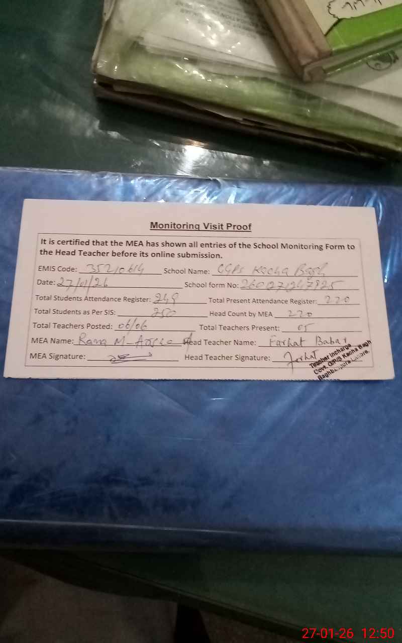 | EMIS Code: 35210614 | Name of School: GGPS KACHA BAGH | |||