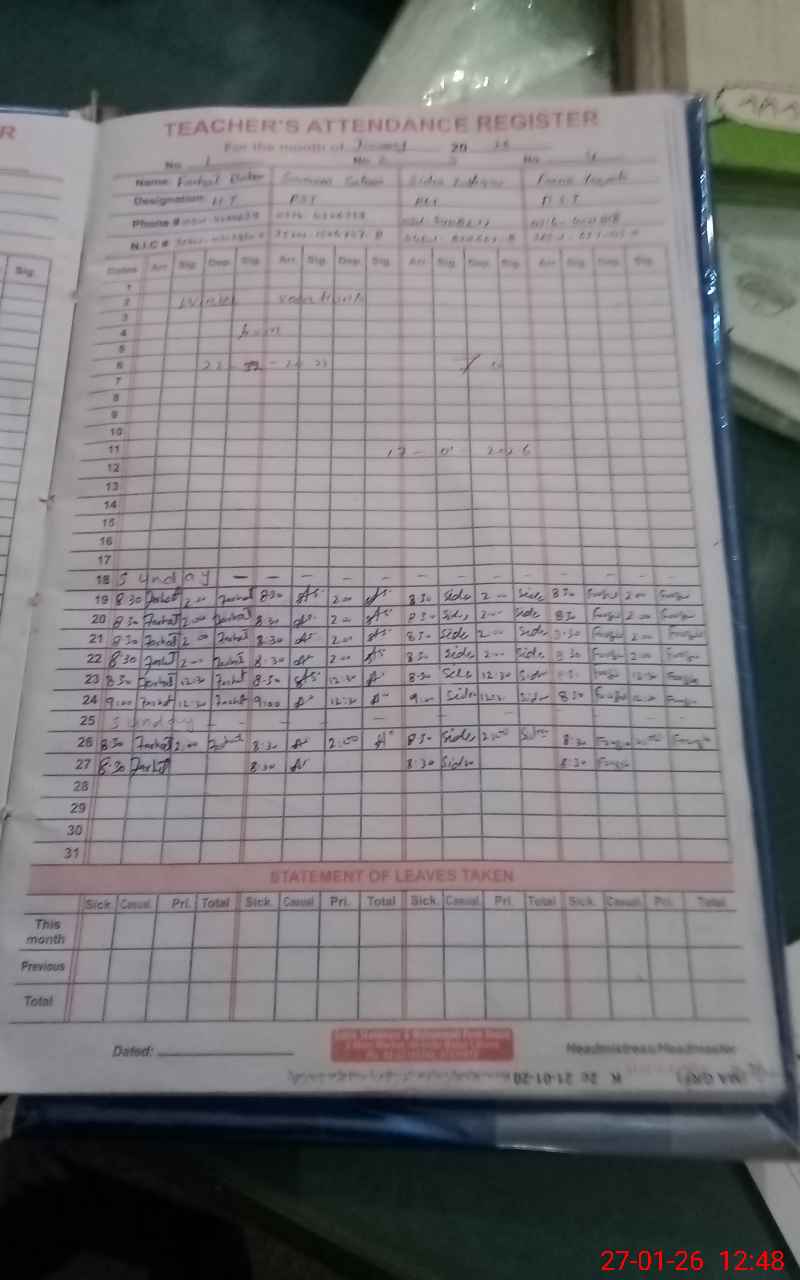 | Name: Fa**** Ba**** Designation: (School Headmaster's/Headmistress's) PST Phone/Cell Number: 03**** |
