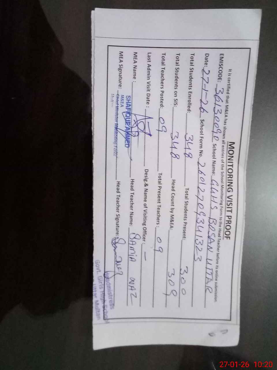 | EMIS Code: 36130090 | Name of School: GGHS BOSAN UTTAR | |||