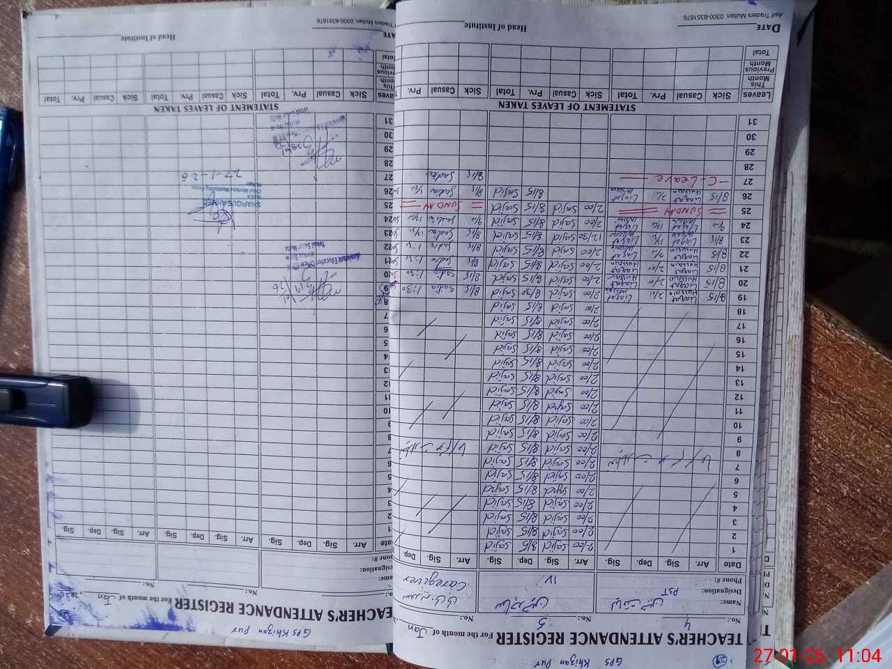 | CNIC | Full Name | Designation | R/C | Absence During Last Calender Month |
