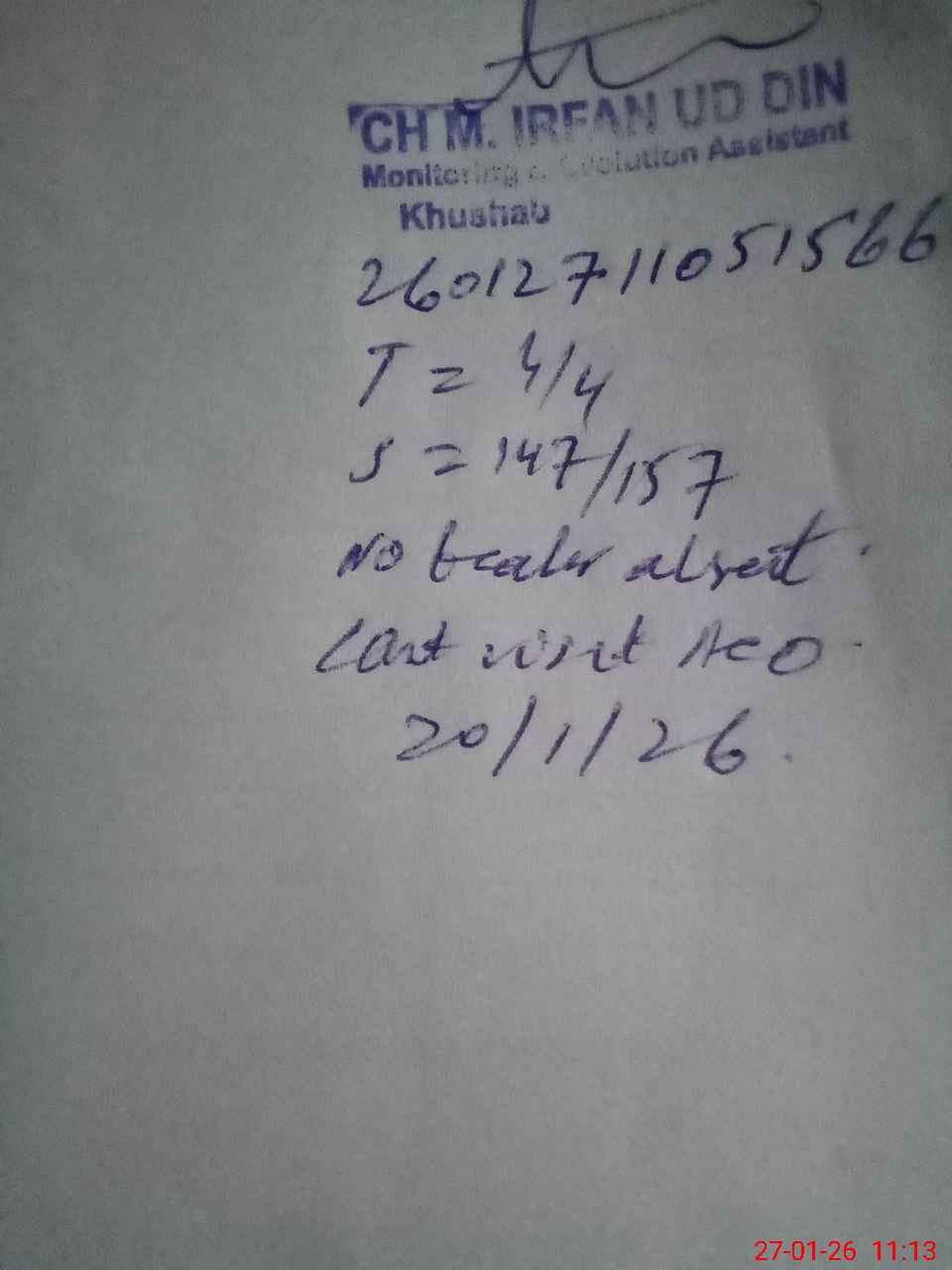 | Remarks (Use Separate Page if Required): GES 39 db student on sis 157 student on register 157 head count 147 no teacher absent last visit aeo 20/1/26 washroom repair needed teacher ng non teachers ng staff required barbed wire required | |||||