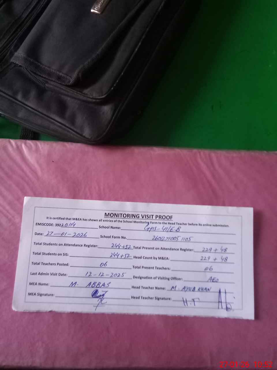 | EMIS Code: 39220114 | Name of School: GPS CHAK NO. 41 EB | |||