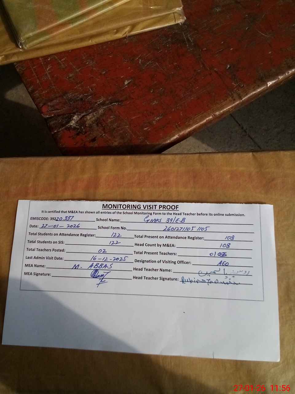 | EMIS Code: 39220337 | Name of School: GMPS CHAK NO 39 EB | |||