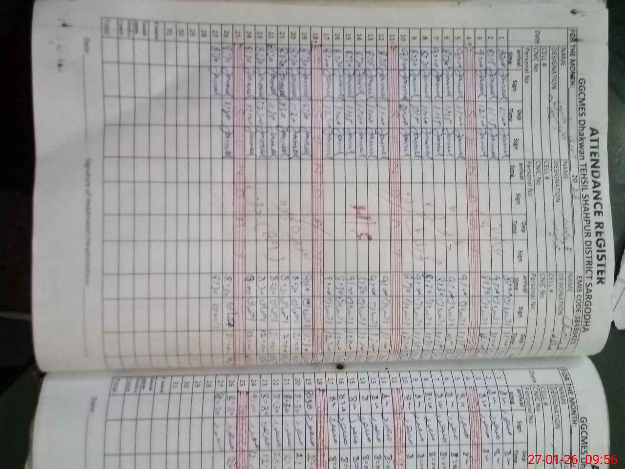 | CNIC | Full Name | Designation | R/C | Absence During Last Calender Month |