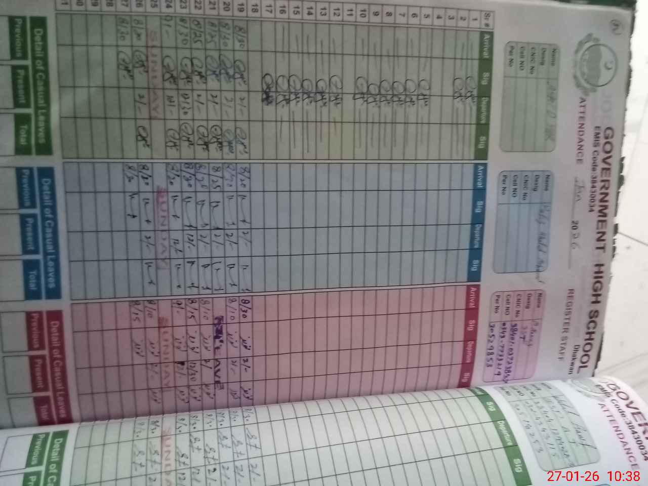 | CNIC | Full Name | Designation | R/C | Absence During Last Calender Month |