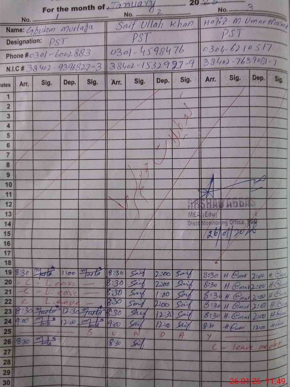 | Name: GH**** MU**** Designation: (School Headmaster's/Headmistress's) PST Phone/Cell Number: 03**** |